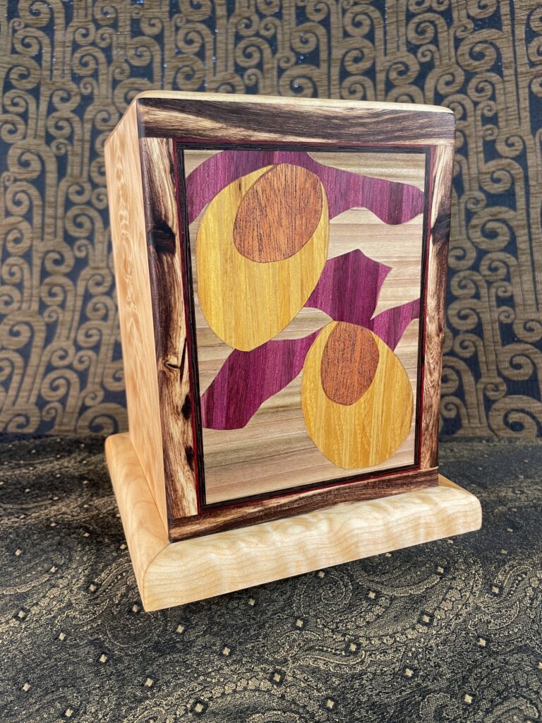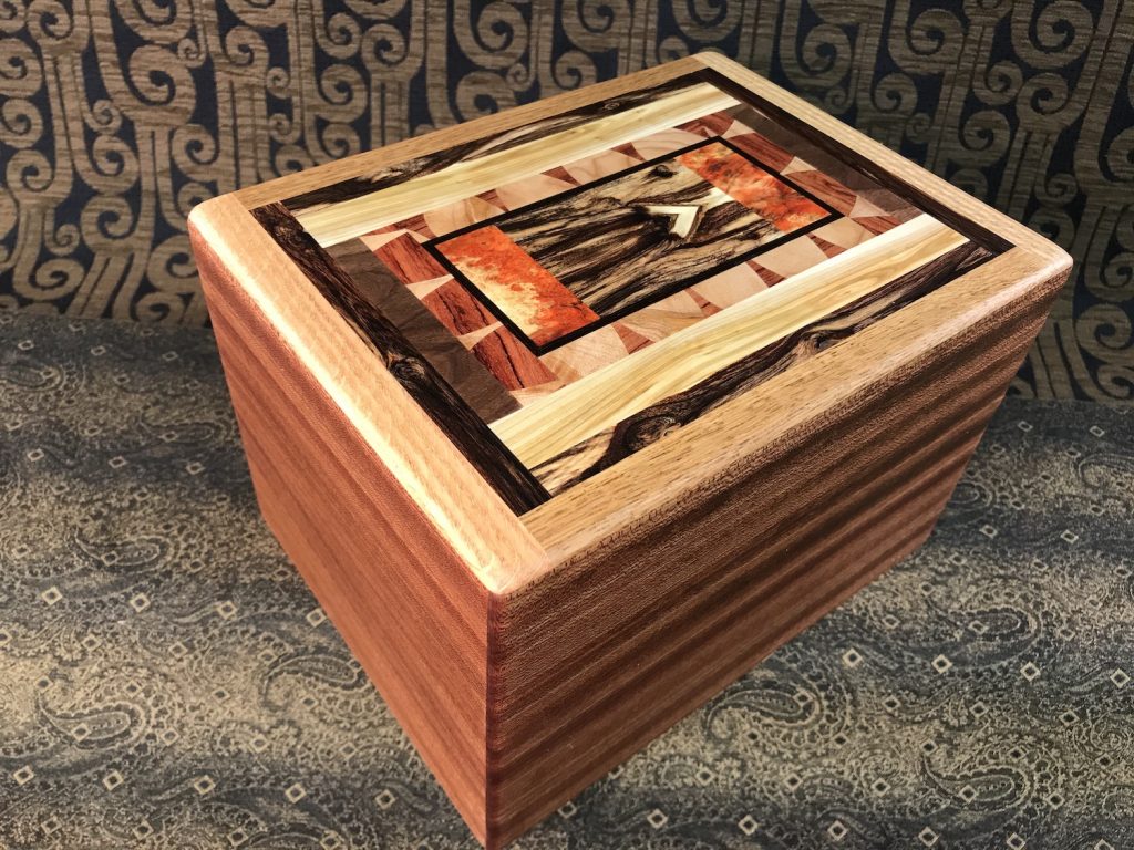 Personal. Customized. All in Brian Baggett’s wood box making style involving choice hardwoods, details, and laminate art relating to your deceased loved one.