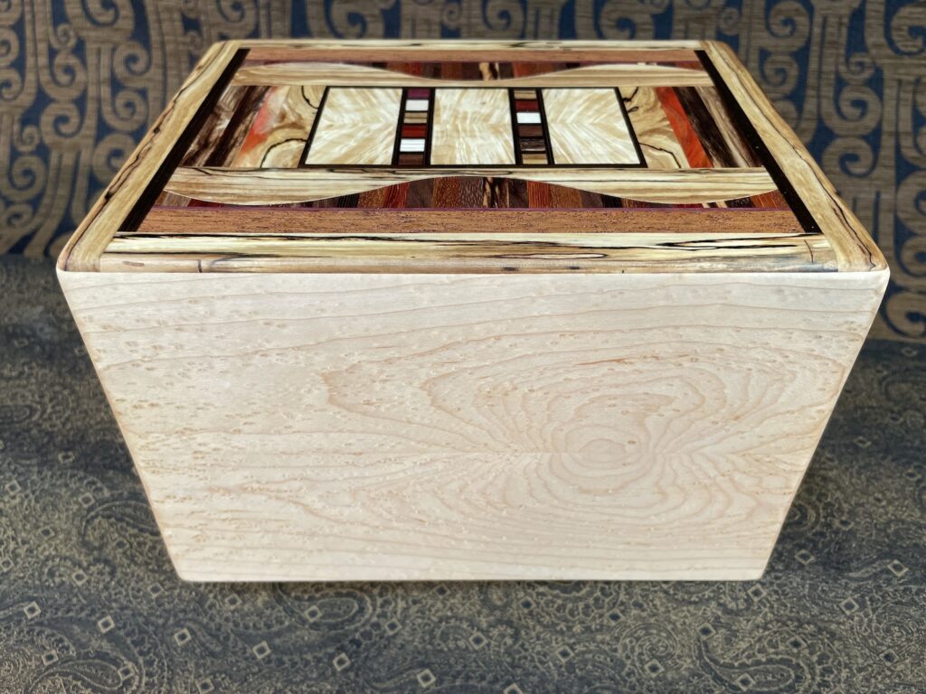 “Hello Brian…Just a note to say how happy I am with my brother’s Urn. I love gazing at it and seeing ever more detail and nuance and meaning … including curves that transcend the linear cuts of wood. Magnificent. I have been sending out pictures to close friends in celebration. All agree that it is beautiful. One person likened it to ‘sacred stained glass designs’. Thank you again for your art and your receptivity and communication skills. Many blessings…” D. Brown – Rocanville, SK (August 2020)